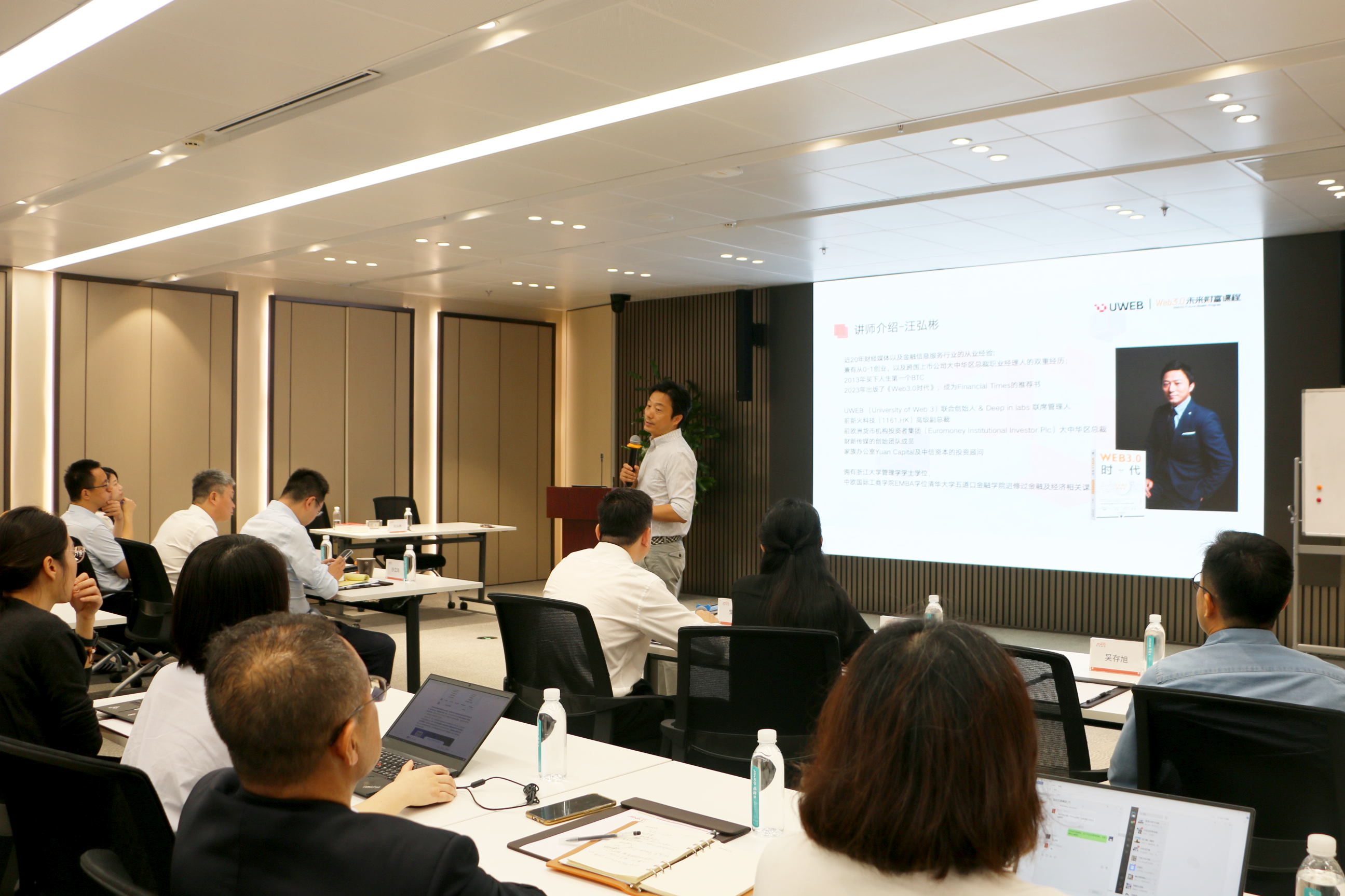 此次培训特邀UWEB(University of Web 3)联合创始人汪弘彬先生作专题分享,UWEB是一家专注数字资产投资教育以及投资孵化平台。304永利集团科技高管团队与相关部门负责人等参与本次培训。